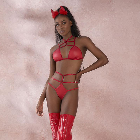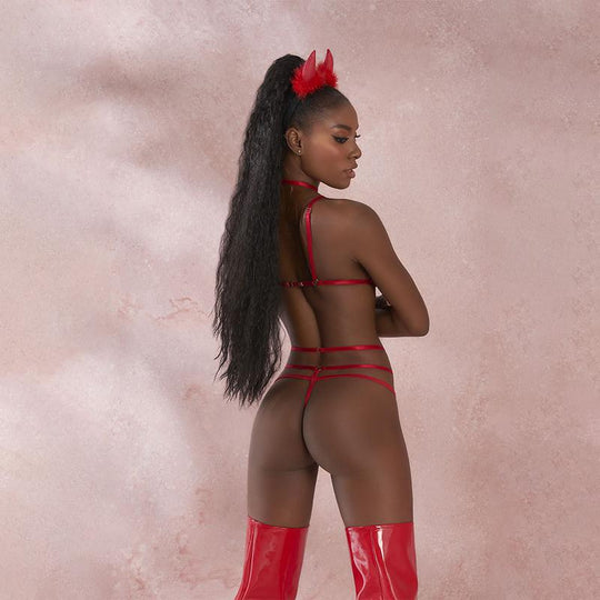 Incluye: Diadema cachos, bralette y tanga.Color: Rojo.Elaborado en: 94% polyester y 6% elastaneTalla: ÚnicaPrecio regular $79.000,00 -