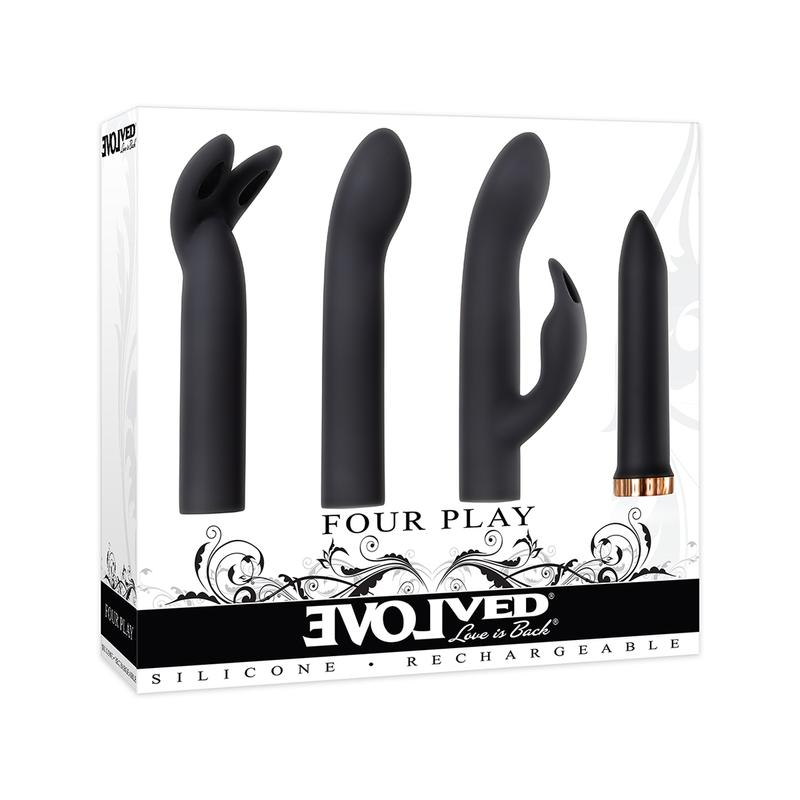 El Vibrador Cuatro Juegos Evolved es una solución versátil y poderosa para quienes desean explorar nuevas formas de placer. Este juguete combina un potente vibrador con tres accesorios intercambiables, cada uno diseñado para estimular diferentes zonas erógenas como el clítoris, el punto G y la vulva.