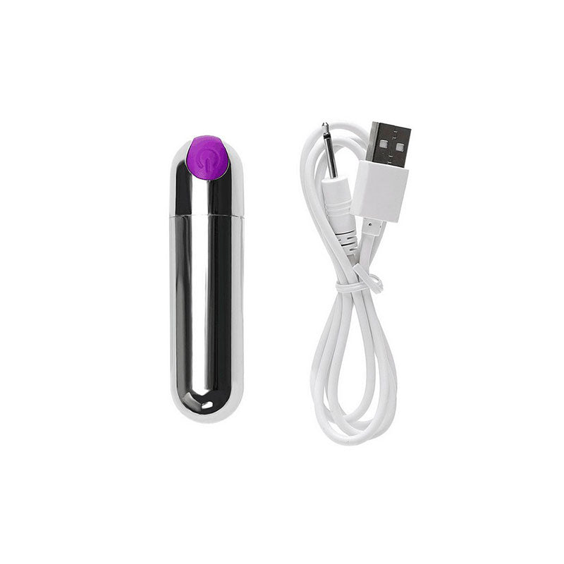 Con 10 modos de vibración, es perfecta para explorar distintas intensidades y ritmos, ya sea a solas o en pareja. Su acabado metálico plateado le da un toque sofisticado, mientras que su recarga por USB la hace práctica y ecológica.